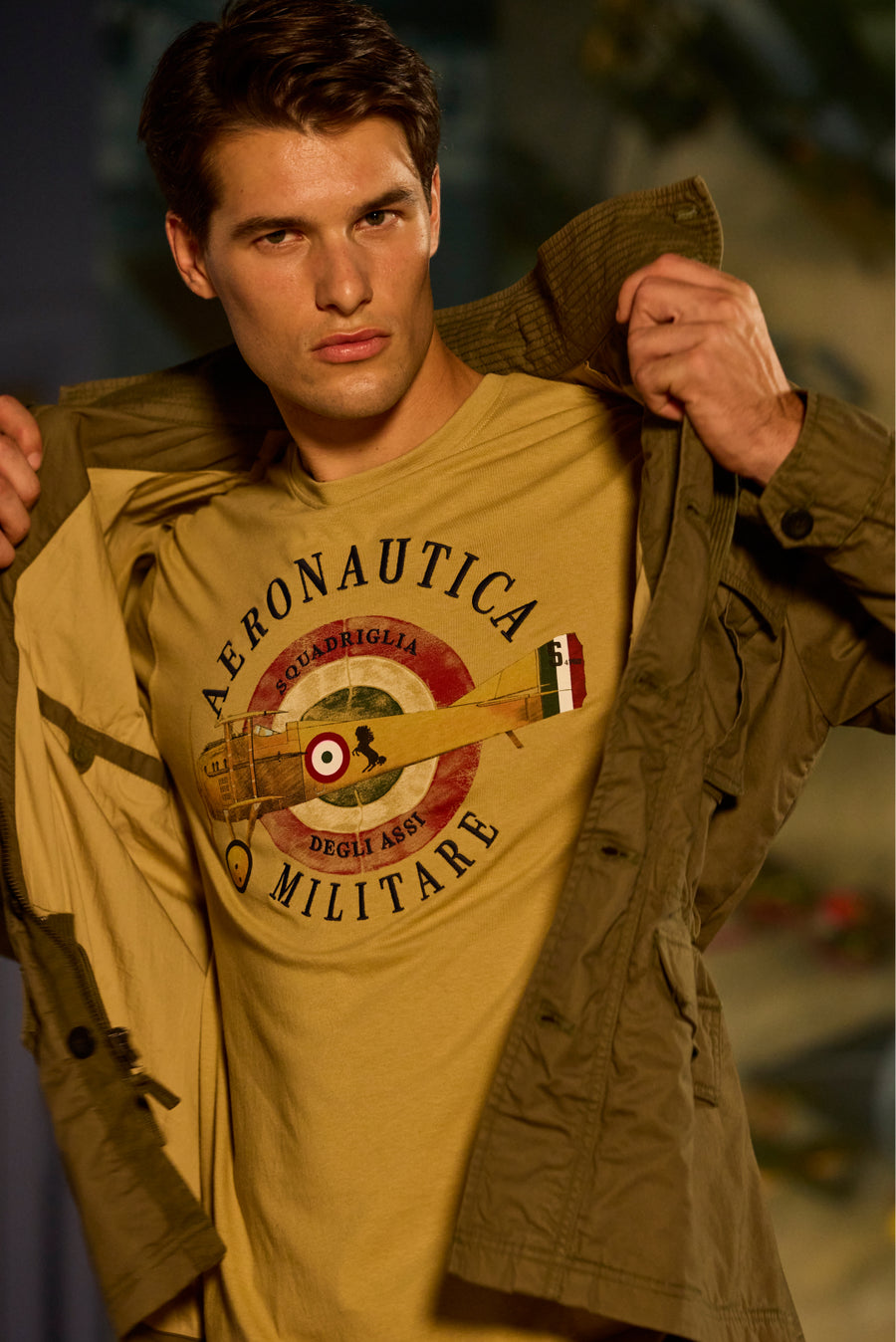 Basic cotton t-shirt with Aeronautica Militare print on the front.